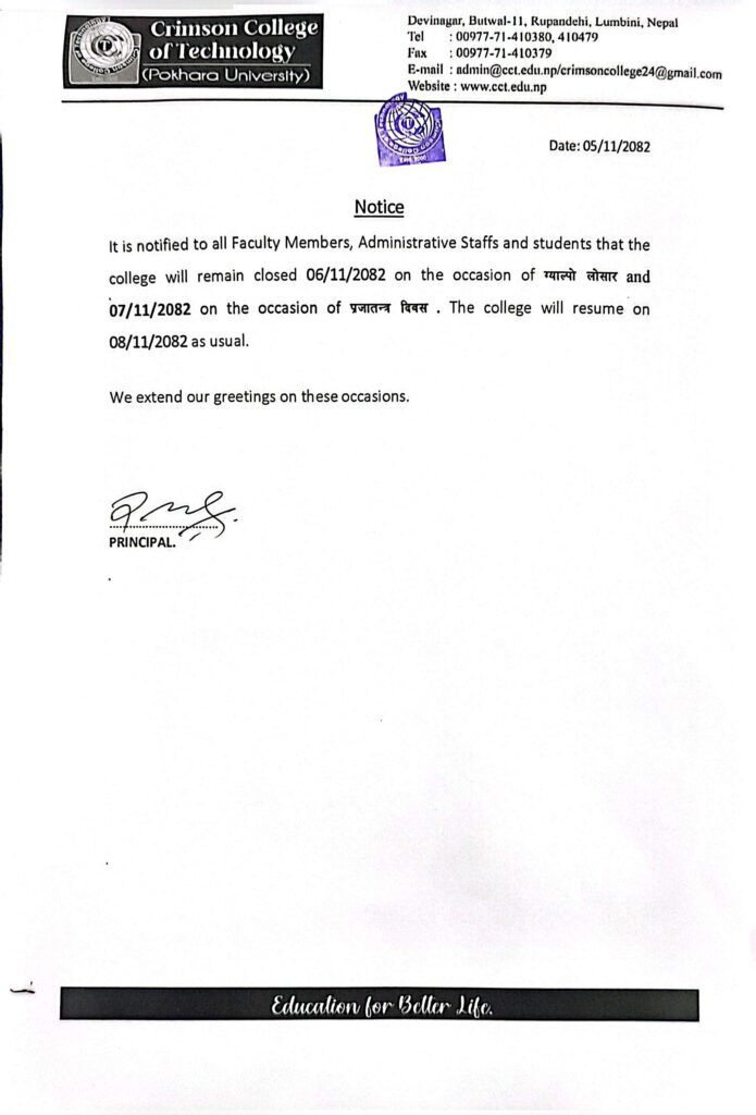 Holiday Notice on the occasion of Gyalpo Losar and Democracy Day