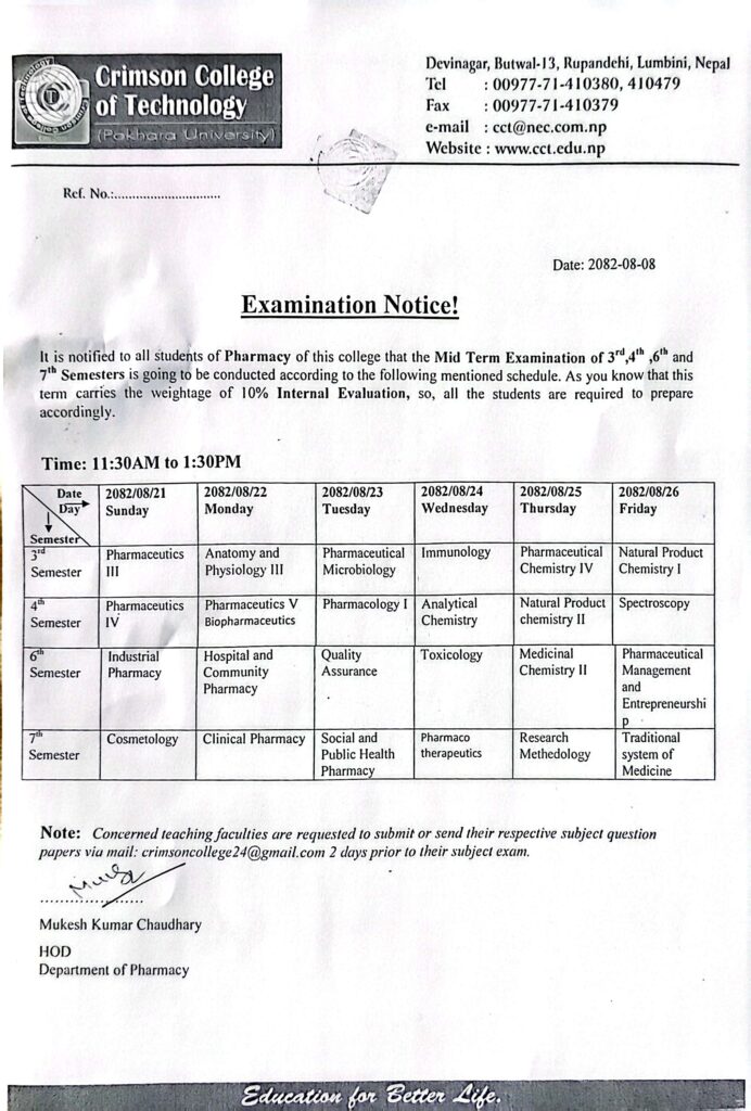 Mid Term Examination Notice of Fall Semester 2025