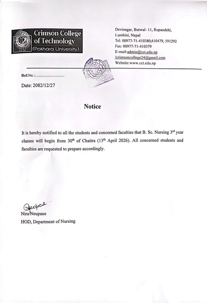 Notice Regarding class start of 3rd Year