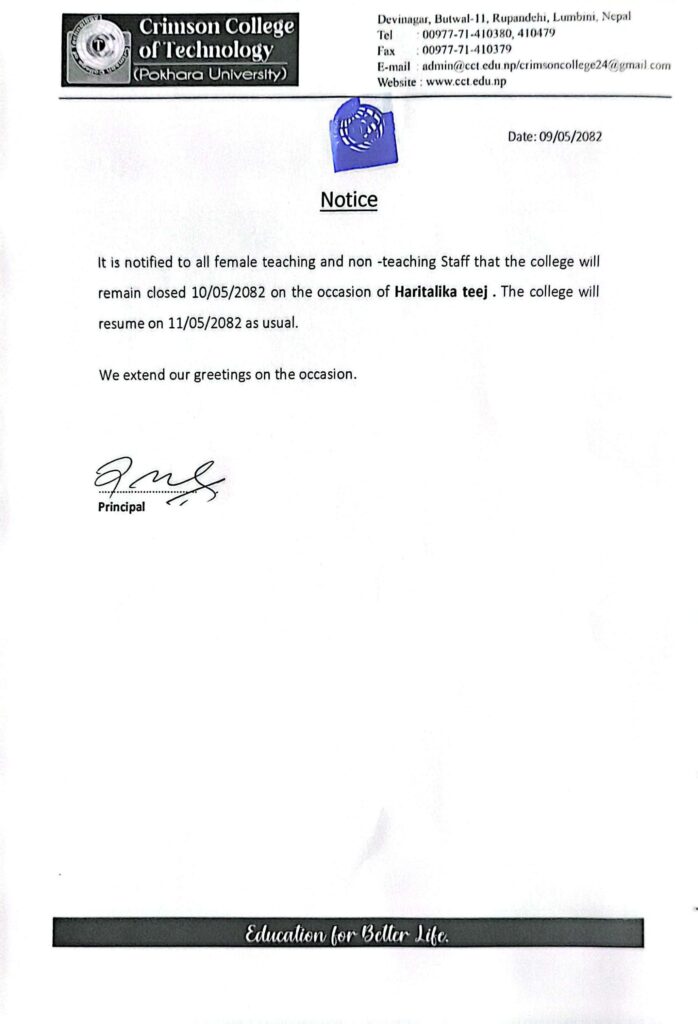 Notice Regarding Haritalika Teej
