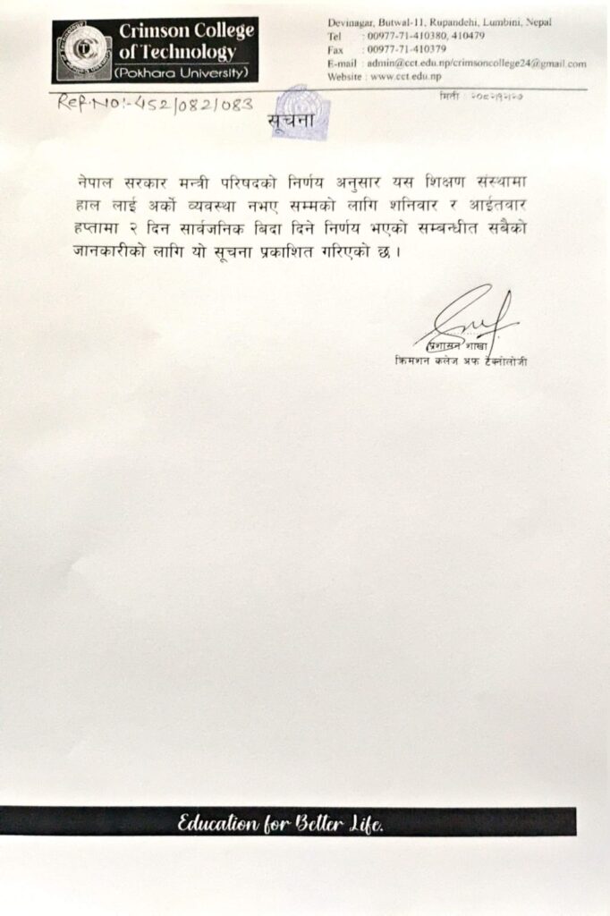 Notice Regarding Weekend Holiday